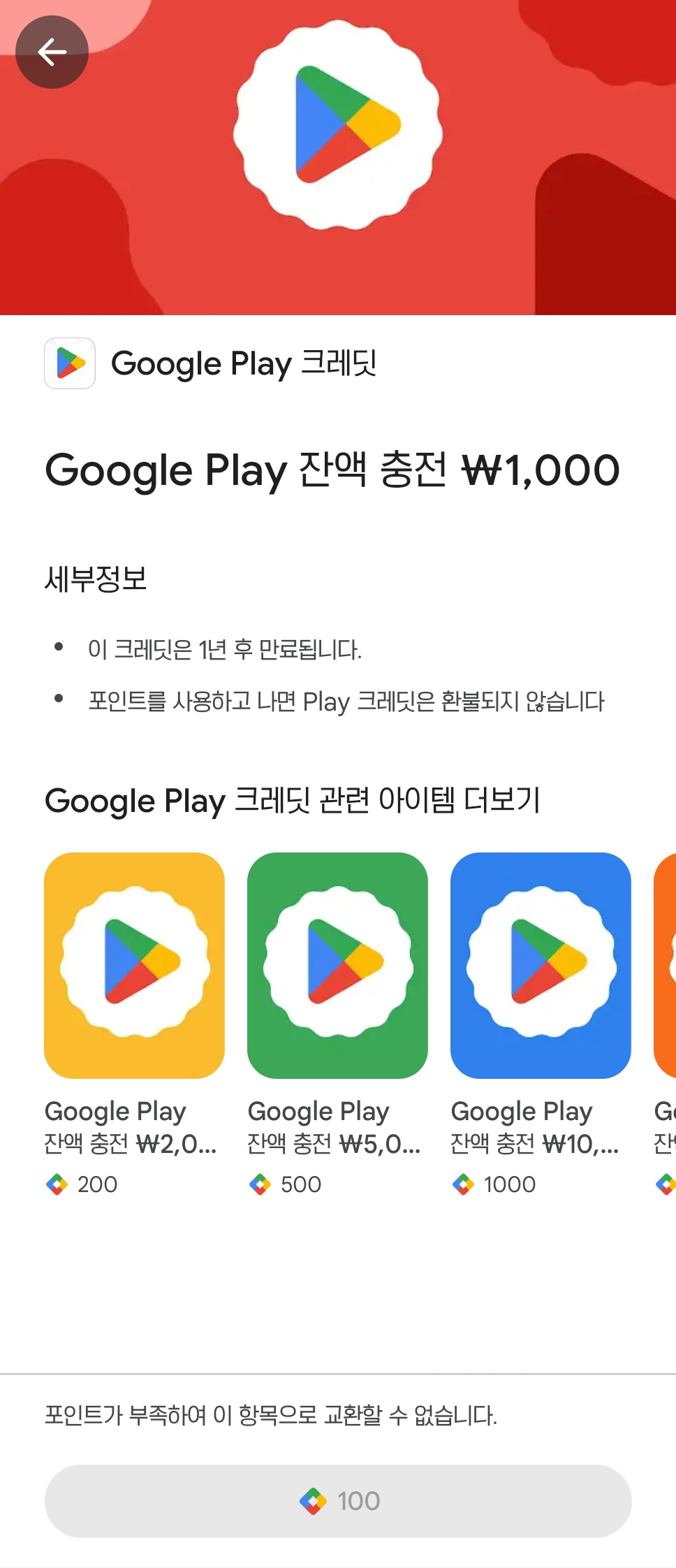 - 포인트로 구글 플레이 크레딧 전환하여 구글 플레이 잔액을 충전하면 사용가능하다!